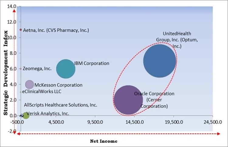 Oracle Corporation (Cerner Corporation), IBM Corporation, UnitedHealth Group, Inc. (Optum, Inc.), Allscripts Healthcare Solutions, Inc., McKesson Corporation, Verisk Analytics, Inc., Aetna, Inc. (CVS Pharmacy, Inc.), eClinicalWorks LLC, Ze omega, Inc., and Epic Systems Corporation.