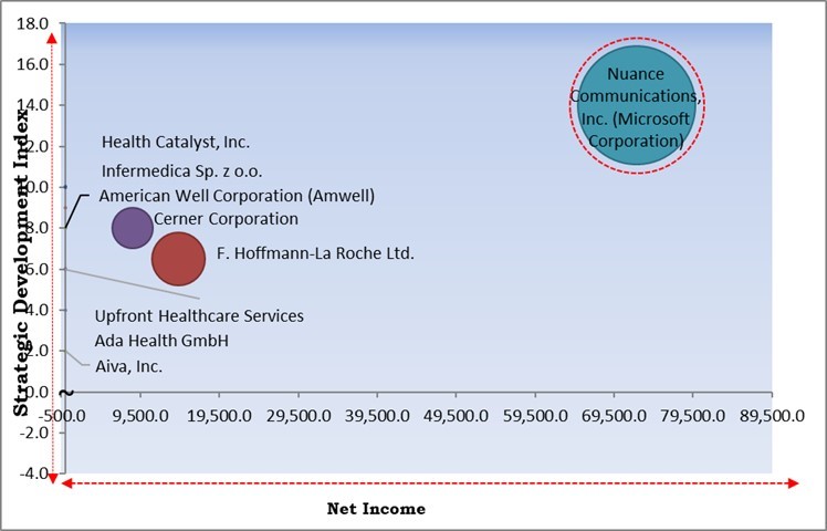 Cerner Corporation, Nuance Communications, Inc., Health Catalyst, Inc., F. Hoffmann-La Roche Ltd., Ada Health GmbH, Lark Technologies, Inc., Upfront Healthcare Services, Infermedica Sp. z o.o., Aiva, Inc. and American Well Corporation (Amwell).