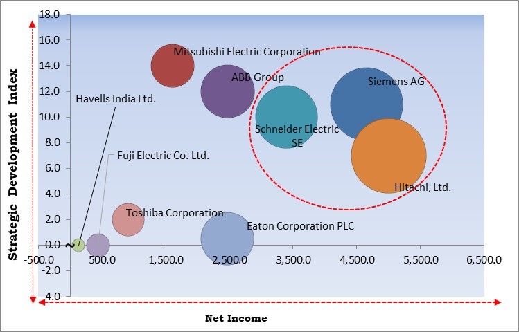 Based on the Analysis presented in the KBV Cardinal matrix; Hitachi, Ltd., Siemens AG and Schneider Electric SE are the forerunners in the Market. Companies such as ABB Group, Mitsubishi Electric Corporation and Eaton Corporation PLC are some of the key innovators in the Market. In January, 2021, ABB Group signed a partnership with Surat Municipal Corporation to support its goal of achieving a clock water supply. The partnership supports the local Government’s Smart City vision and reinforces ABB's commitment to providing its customers around the globe with top-notch power transition solutions.