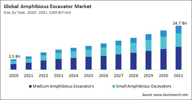 The Global Amphibious Excavator Market size is expected to reach $14.7 billion by 2031, rising at a market growth of 10.5% CAGR during the forecast period.