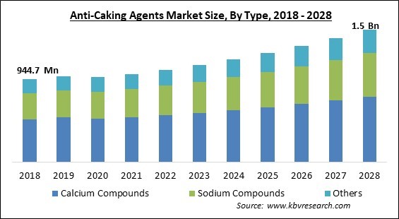 The Global Anti-Caking Agents Market size is expected to reach $1.5 billion by 2028, rising at a market growth of 6.2% CAGR during the forecast period.