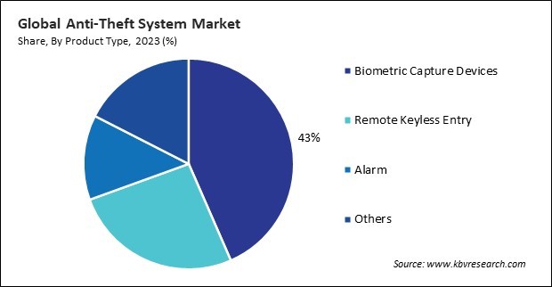 On the basis of product type, the market is segmented into biometric capture devices, remote keyless entry, alarms, and others. In 2023, the remote keyless entry segment attained 26.1 % revenue share in the market.