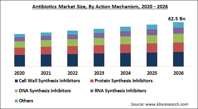 Global Antibiotics Market By Action Mechanism (Cell Wall Synthesis Inhibitors, Protein Synthesis Inhibitors, DNA Synthesis Inhibitors, RNA Synthesis Inhibitors, and Mycolic Acid Inhibitors), By Drug Class (Cephalosporin, Penicillin, Fluoroquinolone, Macrolides, Carbapenem, Aminoglycosides, Sulfonamides, and Others), By Region, Industry Analysis and Forecast, 2020 - 2026
