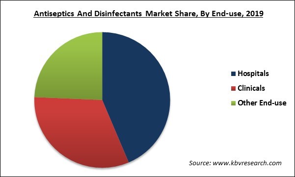 By end-user, the hospital segment held the largest share of the antiseptics and disinfectants market in 2019.