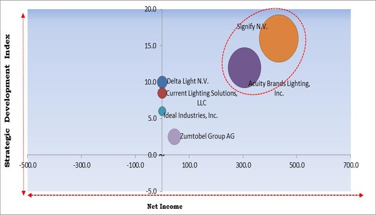 The major strategies followed by the market participants are Acquisitions. Based on the Analysis presented in the Cardinal matrix; Signify N.V. and Acuity Brands Lighting, Inc. are the forerunners in the Architectural Lighting Market. Companies such as Zumtobel Group AG, Delta Light N.V., Current Lighting Solutions, LLC are some of the key innovators in Architectural Lighting Market.