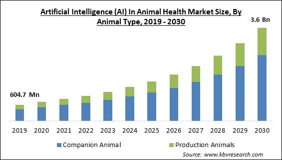 The Global Artificial Intelligence (AI) In Animal Health Market size is expected to reach $3.6 billion by 2030, rising at a market growth of 18.1% CAGR during the forecast period.