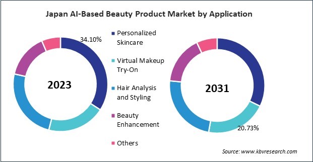 The China market dominated the Asia Pacific AI-Based Beauty Product Market by Country in 2023, and would continue to be a dominant market till 2031; thereby, achieving a market value of $1,001.6 million by 2031. The Japan market is registering a CAGR of 17.6% during (2024 - 2031). Additionally, The India market would showcase a CAGR of 19% during (2024 - 2031).