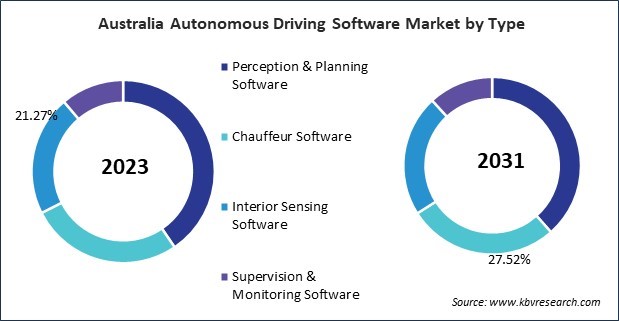 Based on Propulsion, the market is segmented into ICE and Electric Vehicles. Based on Level of Autonomy, the market is segmented into L2, L1, L3, and L4 & L5. Based on Vehicle Type, the market is segmented into Passenger Vehicles and Commercial Vehicles. Based on Type, the market is segmented into Perception & Planning Software, Chauffeur Software, Interior Sensing Software, and Supervision & Monitoring Software. Based on countries, the market is segmented into China, Japan, India, South Korea, Australia, Malaysia, and Rest of Asia Pacific.