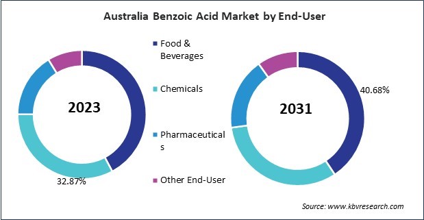 Based on End-User, the market is segmented into Food & Beverages, Chemicals, Pharmaceuticals, and Other End-User. Based on Application, the market is segmented into Benzoates, Benzoates Plasticizers, Benzoyl Chloride, Alkyd Resins, and Animal Feed Additives. Based on countries, the market is segmented into China, Japan, India, South Korea, Australia, Malaysia, and Rest of Asia Pacific.