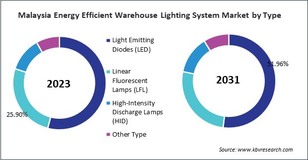 Based on Application, the market is segmented into Industrial, Commercial, and Other Application. Based on Type, the market is segmented into Light Emitting Diodes (LED), Linear Fluorescent Lamps (LFL), High-Intensity Discharge Lamps (HID), and Other Type. Based on countries, the market is segmented into China, Japan, India, South Korea, Singapore, Malaysia, and Rest of Asia Pacific.