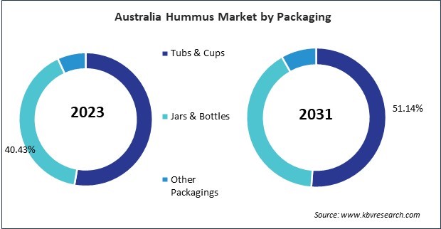 Based on Distribution Channel, the market is segmented into Supermarkets & Hypermarkets, Convenience Stores, Online Stores, and Other Distribution Channels. Based on Packaging, the market is segmented into Tubs & Cups, Jars & Bottles, and Other Packagings. Based on Product, the market is segmented into Classic Hummus, Roasted Garlic Hummus, White Bean Hummus, Black Olive Hummus, and Other Products. Based on countries, the market is segmented into China, Japan, India, South Korea, Australia, Malaysia, and Rest of Asia Pacific.