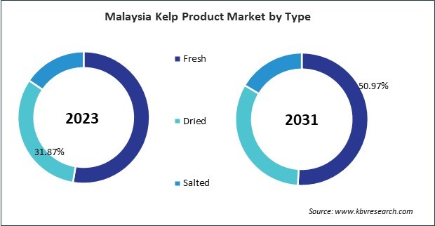 The China market dominated the Asia Pacific Kelp Product Market by Country in 2023 and would continue to be a dominant market till 2031; thereby, achieving a market value of $121.8 million by 2031. The Japan market is registering a CAGR of 5.3% during (2024 - 2031). Additionally, The India market would showcase a CAGR of 6.6% during (2024 - 2031).