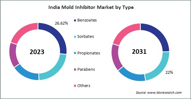 As the Indian animal feed industry grows, there is a higher demand for quality feed to ensure animal health and productivity. These inhibitors are crucial in preventing mold growth in feed, which can lead to animal spoilage and health issues. Therefore, the demand for mold inhibitors is likely to increase in parallel with the expansion of the animal feed industry. As per the National Investment Promotion and Facilitation Agency, The Indian animal feed industry grew by 3.5% over the last five years to reach the size of approx. $11.66 Bn. It is expected to reach $19.23 Bn by 2028, exhibiting a growth rate of 8.2%. India has established strong markets for cattle and poultry feeds. Likewise, pharmaceutical manufacturing facilities require strict control over environmental conditions to prevent contamination of drugs during production. Mold inhibitors are essential in maintaining the quality and safety of pharmaceutical products by preventing mold growth in raw materials, intermediates, and finished products. Therefore, the need for mold inhibitors is expected to rise in tandem with China's pharmaceutical industry's growth. According to the International Trade Administration (ITA), China’s pharmaceutical sector has constantly grown and reached $161.8 billion in 2023, taking about 30% of the global industry share. Thus, the expansion of the rising animal feed sector and pharmaceutical industry are driving the market's growth.