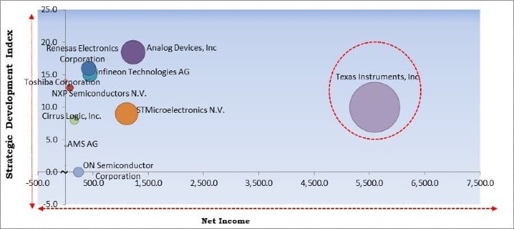 Analog Devices, Inc., Infineon Technologies AG, Renesas Electronics Corporation, NXP Semiconductors N.V., ON Semiconductor Corporation, STMicroelectronics N.V., Texas Instruments, Inc., Toshiba Corporation, AMS AG, and Cirrus Logic, Inc.
