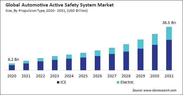 The Global Automotive Active Safety System Market size is expected to reach $38.3 billion by 2031, rising at a market growth of 15.6% CAGR during the forecast period.
