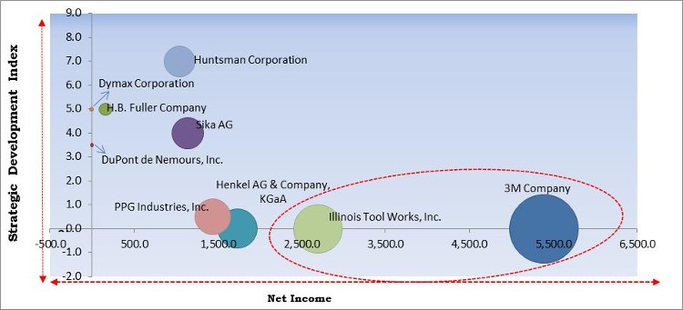 The market research report covers the analysis of key stake holders of the market. Key companies profiled in the report include Sika AG, Henkel AG & Company, KGaA, 3M Company, DuPont de Nemours, Inc., Huntsman Corporation, Dymax Corporation, Arkema S.A., PPG Industries, Inc., H.B. Fuller Company, and Illinois Tool Works, Inc.