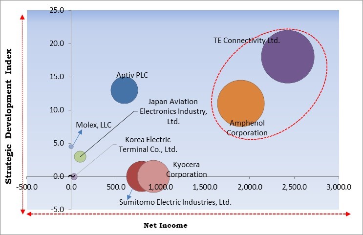 Based on the Analysis presented in the KBV Cardinal matrix; TE Connectivity Ltd. and Amphenol Corporation are the forerunners in the Market. In July, 2022, TE Connectivity took over Linx Technologies to complement TE’s broad connectivity product offerings, especially in antenna and RF connectors for IoT. Companies such as Kyocera Corporation, Sumitomo Electric Industries, Ltd., Aptiv PLC are some of the key innovators in the Market.
