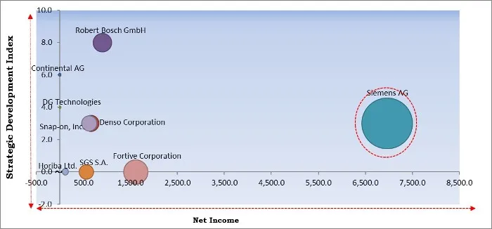 Robert Bosch GmbH, Siemens AG, Continental AG, Denso Corporation, Horiba Ltd., SGS S.A., Snap-on, Inc., Fortive Corporation (Fluke Corporation), DG Technologies (Dearborn Group), and Noregon Systems, Inc. (Hearst Communications, Inc.)