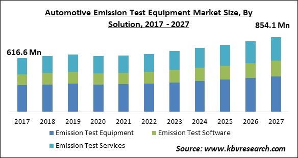 The automotive emission test equipment market size is projected to reach USD 854.1 million by 2027.