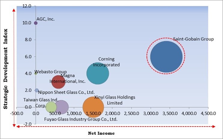 Based on the Analysis presented in the KBV Cardinal matrix; Saint-Gobain Group is the forerunner in the Market. In October, 2021, SAINT-GOBAIN SEKURIT entered into a partnership with HOPIUM, in order to provide innovative solutions that combine design, safety, and thermal and acoustic comfort to Hopium for creating a great user experience on all of the vehicle's glass surfaces. Companies such as Corning Incorporated, Magna International, Inc., Xinyi Glass Holdings Limited are some of the key innovators in Market.