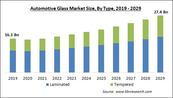 The Global Automotive Glass Market size is expected to reach $27.4 billion by 2029, rising at a market growth of 6.9% CAGR during the forecast period.