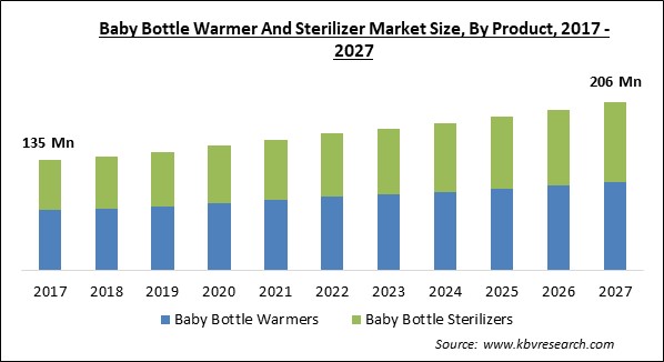 The baby bottle warmer and sterilizer market size is projected to reach USD 206 million by 2027.