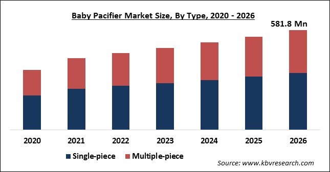The Global Baby Pacifier Market size is expected to reach $581.8 Million by 2026, rising at a market growth of 8.8% CAGR during the forecast period. The baby pacifier refers to a product which is used for babies to calm them. These pacifiers are considered safe for the babies to suck. There is a wide range of pacifiers available in the market that includes rings & rattles. They are also known as teethers, soothers, and dummies and are available with silicone, rubber teat, latex, plastic & silicone mouth handle, or shields. Rubber & Latex pacifiers are comparatively natural, softer, & flexible than silicone pacifiers. Though, the pacifiers made of silicone last longer than latex pacifiers.