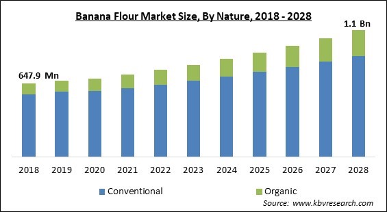 The Global Banana Flour Market size is expected to reach $1.1 billion by 2028, rising at a market growth of 6.5% CAGR during the forecast period.