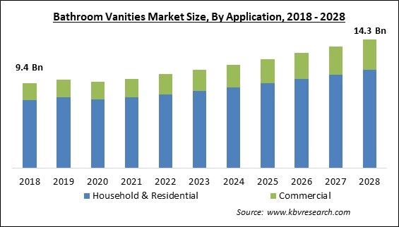 The Household & Residential segment acquired maximum revenue share in the Global Bathroom Vanities Market by Application in 2021 thereby, achieving a market value of $10.9 billion by 2028.