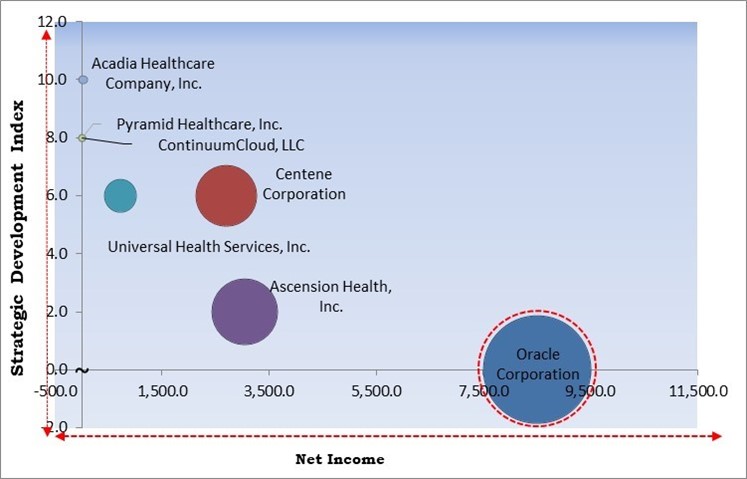 Based on the Analysis presented in the KBV Cardinal matrix; Oracle Corporation is the forerunners in the Market. Companies such as Ascension Health, Inc., Centene Corporation and Universal Health Services, Inc. are some of the key innovators in Market. For Instance, In January, 2022, Centene Corporation acquired Magellan Health, Inc. This acquisition allows Centene to offer comprehensive, integrated healthcare solutions aimed at improving health outcomes and reducing costs for complex, high-cost populations.