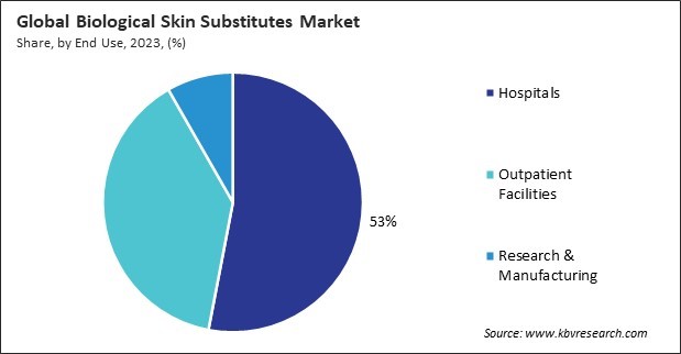 By application, the market is divided into acute wounds and chronic wounds. The chronic wounds segment garnered 47% revenue share in the market in 2023. These wounds are often challenging to heal and require long-term management strategies. Biological skin substitutes offer effective solutions by providing a conducive environment for tissue regeneration and reducing healing time.