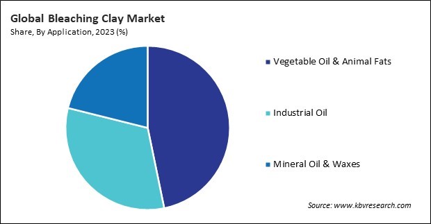 Based on product type, the market is segmented into activated bleaching clay and natural bleaching clay. In 2023, the natural segment garnered a significant 33% revenue share in the bleaching clay market. In terms of volume, the natural bleaching clay segment would utilize 1,546.31 kilo tonnes of bleaching clay by 2031. Heightened awareness of environmental issues, such as climate change, pollution, and ecosystem degradation, has led consumers and industries to prioritize sustainability in product sourcing and manufacturing processes.