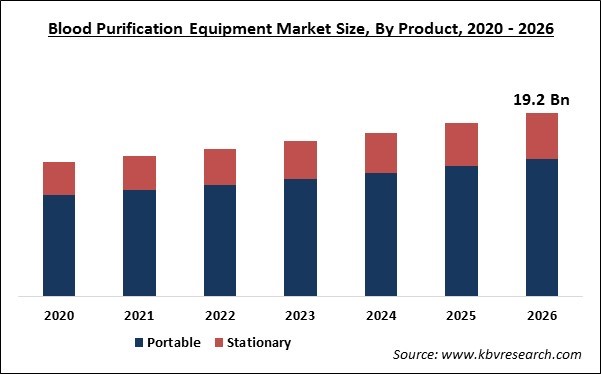Based on Product, the market is segmented into Portable and Stationary. The portable blood purification equipment segment obtained the significant revenue share in 2019 and would maintain the same kind of trend in the next few years. Portable equipment is highly used by healthcare experts during the constant blood purification process. The portability of equipment enables effective treatment during emergency cases. Moreover, portable equipment is very compact & takes least space that further augments its adoption.