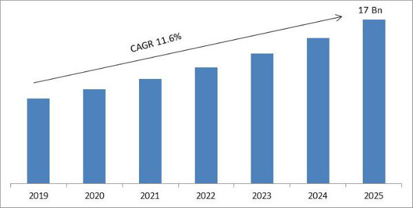 The Global Body Area Network Market size is expected to reach $17 billion by 2025, rising at a market growth of 11.6% CAGR during the forecast period. A wide range of factors are contributing towards the growth of the market. Some of these are, increased utilization smart devices for tracking physical fitness and its availability at low cost, rapid advances in medical devices and communication technologies, supporting government and hospital programs to facilitate digital healthcare.