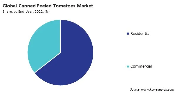 Diced tomatoes offer convenience to consumers and food service operators as they are pre-cut into uniform pieces, eliminating the need for additional preparation. Thus, the Diced tomatoes segment generated Diced tomatoes generated 36.9% revenue share in the market 2022. This saves time and effort in the kitchen, making diced tomatoes a popular choice for busy individuals and professional chefs. In addition, diced tomatoes provide consistency in texture and flavor, as they are uniformly cut and processed.