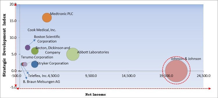 The major strategies followed by the market participants are Product Launches and Approvals. Based on the Analysis presented in the Cardinal matrix; Johnson & Johnson is the forerunners in the Catheters Market. Companies such as Abbott Laboratories, Medtronic PLC and Becton, Dickinson and Company are some of the key innovators in the Market.
