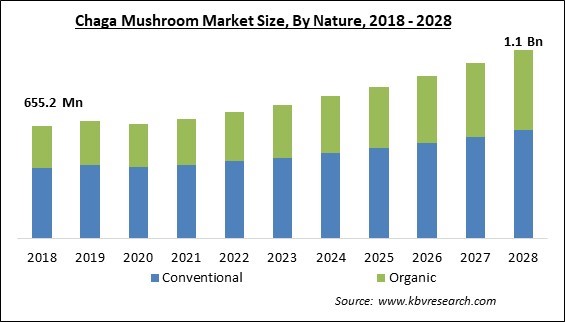 The Global Chaga Mushroom Market size is expected to reach $1.1 billion by 2028, rising at a market growth of 6.9% CAGR during the forecast period.