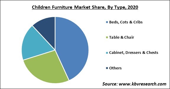 Based on the Type, the Children furniture market is segmented into Beds, Cots & Cribs, tables & chairs, cabinets, Dressers & Chests, and Others. The Table and chair segment held a significant revenue share of the children furniture market in 2020. The growth of this segment is due to the fact that tables & chairs for children are often smaller in size, and can be installed at home. Children specialized tables and chairs require minimal investment from parents. The low cost and space-saving attributes of the products under this segment present new and lucrative opportunities for producers to gain wider consumer base.