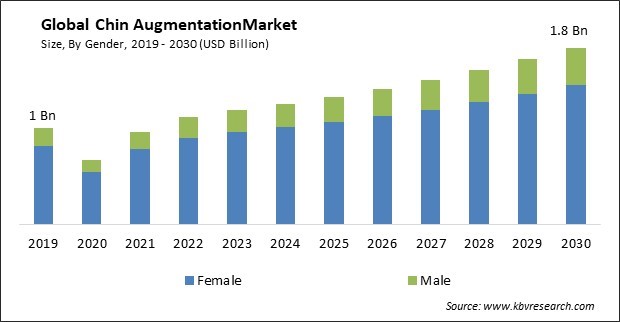 The Global Chin Augmentation Market size is expected to reach $1.8 billion by 2030, rising at a market growth of 6.4% CAGR during the forecast period.