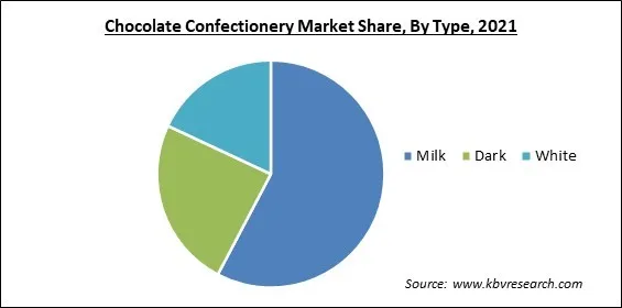 Based on Type, the market is segmented into Milk, Dark, and White. In 2021, the milk segment acquired the highest revenue share of the chocolate confectionary market. Milk chocolate is being preferred by a considerable number of people all over the world, which is also owing to the growth of this segment. Moreover, many companies are introducing new products along with clean labels like vegan, organic, and certified Kosher to enhance their existing product assortment due to the growing developing preference for milk type categories.