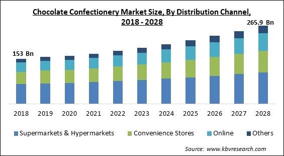 The Supermarkets & Hypermarkets segment acquired maximum revenue share in the Global Chocolate Confectionery Market by Distribution Channel in 2021, thereby, achieving a market value of $107.0 Billion by 2028.