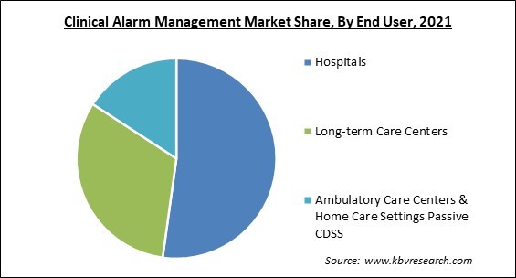 By End-user, the Clinical Alarm Management Market is classified into Hospitals, Long-term care centers, and Ambulatory care centers & home care settings Passive CDSS. The long-term care centers segment registered a significant revenue share in the clinical alarm management market in 2021. It is because there are more senior living institutions and more people are becoming aware of the value of clinical alarm management solutions at these facilities. Alarm fatigue and safety have become crucial concerns in protecting patient safety. To find the fundamental cause and provide solutions, a multidisciplinary examination at the systems level is necessary.