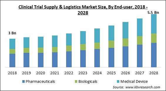 The Global Clinical Trial Supply & Logistics Market size is expected to reach $5.5 billion by 2028, rising at a market growth of 7.8% CAGR during the forecast period.