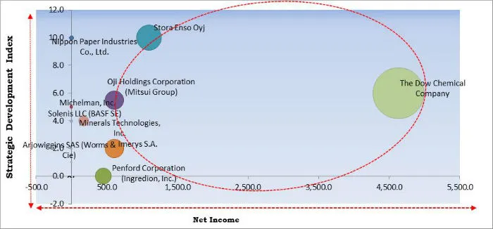 Some of the key industry players are Oji Holdings Corporation (Mitsui Group), Stora Enso Oyj, Nippon Paper Industries Co., Ltd., Michelman, Inc., Solenis LLC (BASF SE), Imerys S.A., Arjowiggins SAS (Worms & Cie), Minerals Technologies, Inc., Penford Corporation (Ingredion, Inc.), and The Dow Chemical Company.