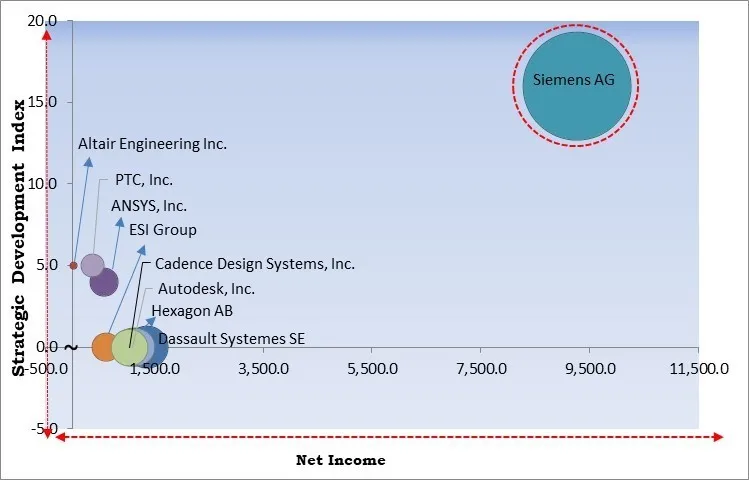 ANSYS, Inc., Siemens AG, Dassault Systemes SE, Altair Engineering Inc., Hexagon AB, ESI Group (Keysight Technologies, Inc.), PTC, Inc., The MathWorks, Inc., Autodesk, Inc. and Cadence Design Systems, Inc.