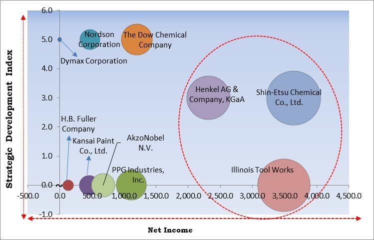Kansai Paint Co., Ltd., Nordson Corporation, Dymax Corporation, H.B. Fuller Company, Shin-Etsu Chemical Co., Ltd., The Dow Chemical Company, Henkel AG & Company, KGaA, Illinois Tool Works, PPG Industries, Inc., and AkzoNobel N.V.