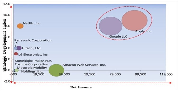 The market research report covers the analysis of key stake holders of the market. Key companies profiled in the report include Hitachi, Ltd., Toshiba Corporation, Koninklijke Philips N.V., LG Electronics, Inc. (LG Corporation), Panasonic Corporation, Netflix, Inc., Google LLC, Apple, Inc., Amazon Web Services, Inc., and Motorola Mobility Holdings. Inc. (Lenovo Group Limited).