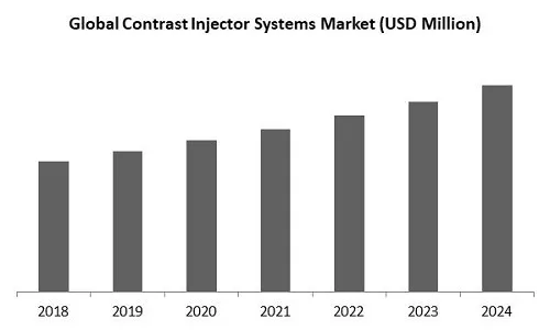 The Global Contrast Injector Systems Market size is expected to reach $1.03 billion by 2024, rising at a market growth of 7.9% CAGR during the forecast period. Contrast injector systems are medical devices which use contrast media to improve the visibility of complex body structures, namely body fluids, tissues, arteries, and veins. The diagnostic process is conducted using various imaging procedures such as computed tomography (CT), magnetic resonance imaging (MRI), and angiography. Advanced healthcare spaces are swiftly adopting contrast injector techniques mainly because injector systems offer comprehensive imagery by way of computed tomography (CT), magnetic resonance imaging (MRI), angiography, and others. Technological innovations help with the development of inexpensive and entirely automated contrast injector approaches. These kinds of automated contrast injectors support radiologist and other healthcare practitioners in reducing the odds of human error and making it possible for customized patient treatment. Nevertheless, the high-priced contrast injector systems combined with the hazards involved with contrast media impede the market expansion.