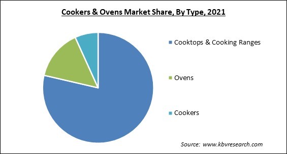 The Cooktops & Cooking Ranges segment acquired maximum revenue share in the Global Cookers & Ovens Market by Type in 2021, thereby, achieving a market value of $170.3 Billion by 2028.
