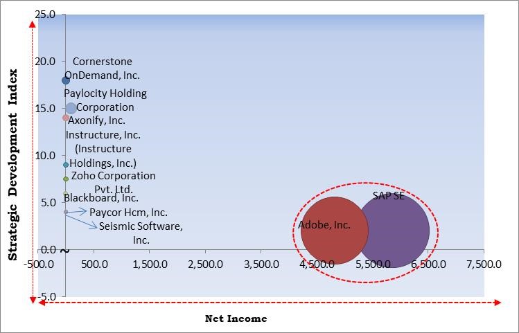 SAP SE, Instructure, Inc. (Instructure Holdings, Inc.) (Thoma Bravo, LP), Cornerstone OnDemand, Inc. (Clearlake Capital Group, L.P.), Adobe, Inc., Paylocity Holding Corporation, Seismic Software, Inc., Paycor Hcm, Inc, Axonify, Inc., Zoho Corporation Pvt. Ltd. and Blackboard, Inc. (Providence Equity Partners)